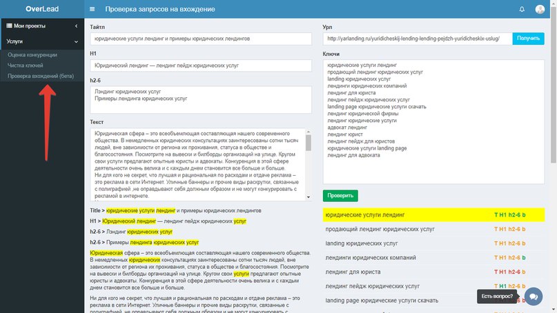 В данном разделе вы можете бесплатно проверить страницу сайта или текст на наличие в нем вхождений поисковых запросов.